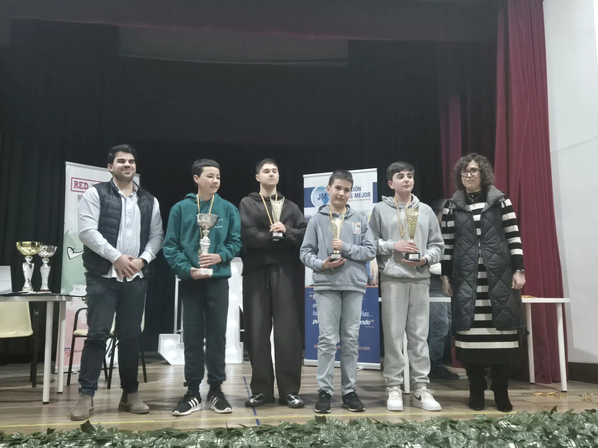 El sábado 7 de febrero se celebró el V Torneo del XIX Circuito Escolar en el colegio Jesús María Alfonso X. Con una gran participación de los alumnos del centro y un buen ambiente deportivo, se desarrolló el evento. En la clausura nos acompañó la Directora, Carmen Mª Fernández de Luna y de Administración, José Fernández Melgarejo. Destacar la buena actuación de los jugadores locales (Alan Alexander Martínez Ruiz, campeón de la categoría prebenjamín. Noah López Lorca, campeón de 2º de primaria y Ulises Javier Martínez Ruiz, tercer clasificado en la categoría benjamín).